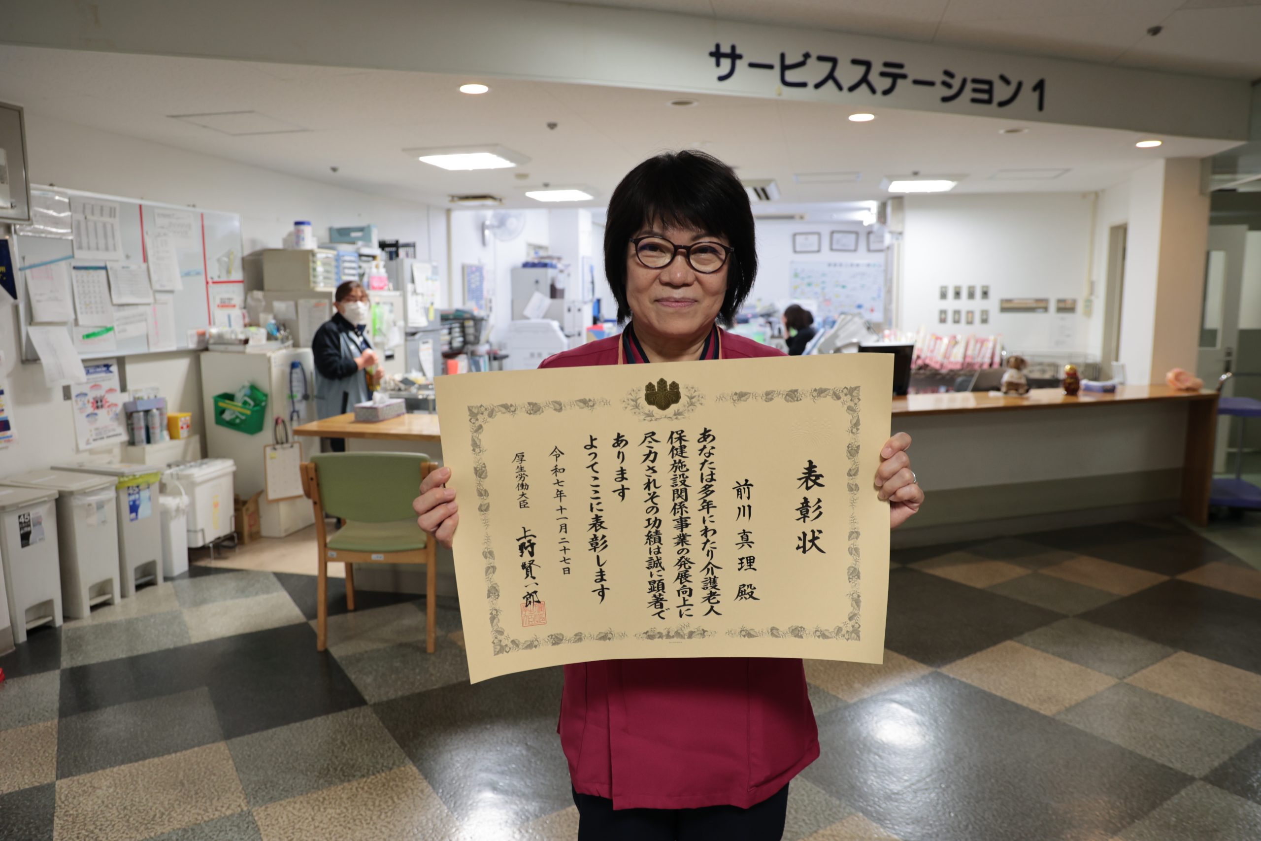 前川真理看護師長が令和7年度 介護老人保健施設事業功労者 厚生労働大臣表彰を受けました。